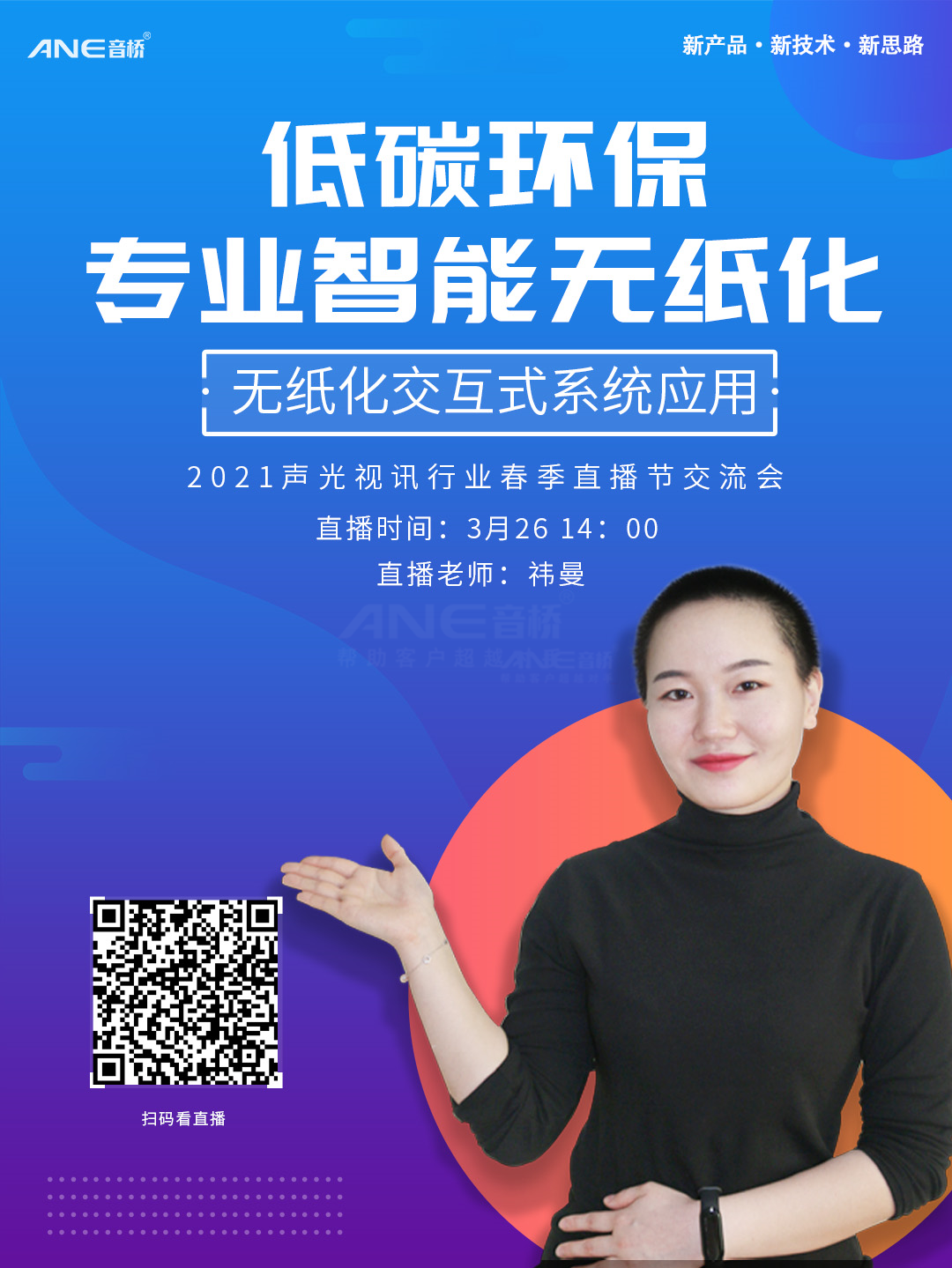 鎖定3月26日14:00慧聰網——音橋直播間!帶你深入了解ANE智能無紙化交互式系統應用,解鎖高效便捷的數字化會議體驗,讓會議管理、會議后勤服務更簡單、會議分享更豐富,讓會議過程更高效便捷!
